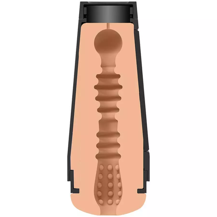 Das Case hat an der Seite zwei Druckflächen wo du selbst bestimmen kannst wie „eng“ der Masturbator sich innen anfühlen soll.